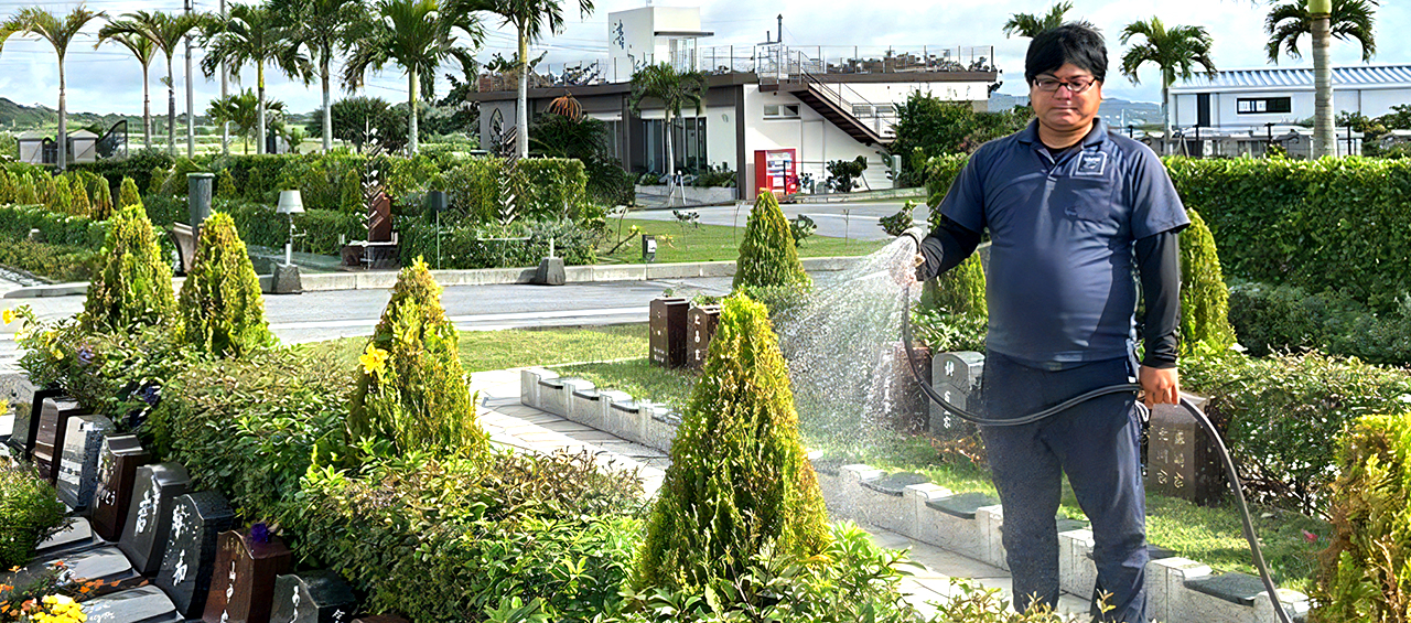 霊園内は常駐スタッフにより常に美しく保たれています。管理棟入り口からエレベーターなど全バリアフリー設計。空調完備の休憩所や数多く設置された洗い場など、皆様の快適なお墓参りをお約束いたします。またテントの貸し出しや設置なども無料にて承っております。スタッフまでお気軽にお申し付けください。