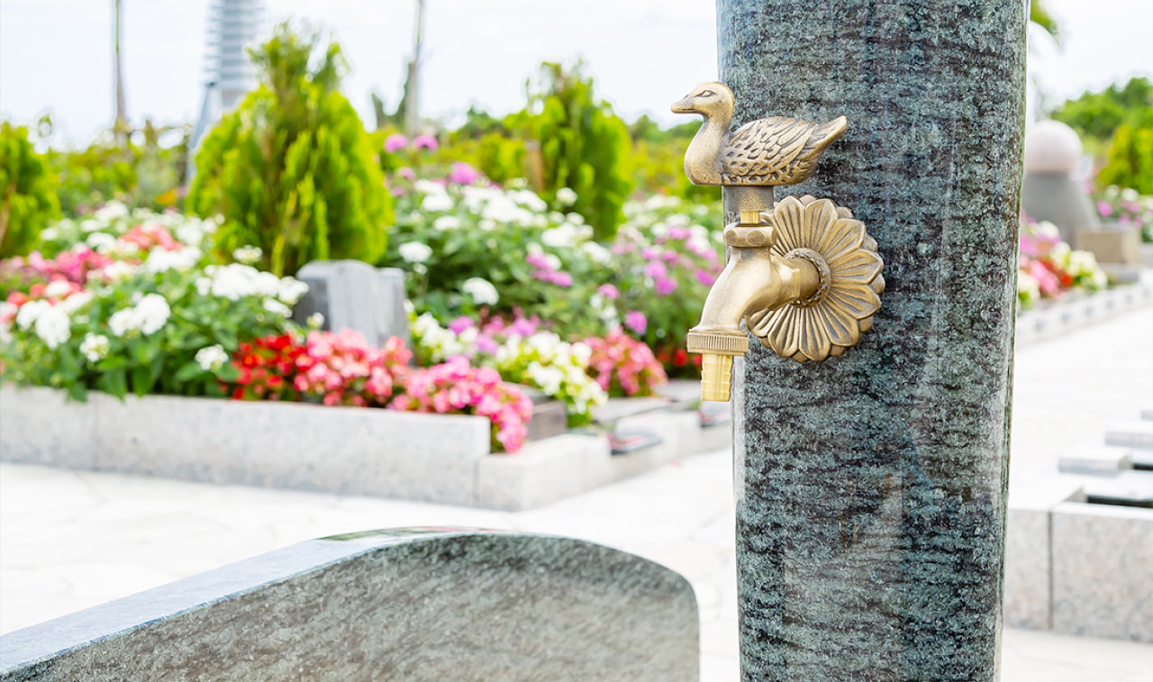 お墓参りに大切な洗い場は最小限の移動で済むよう霊園内8ヶ所に設置しています。